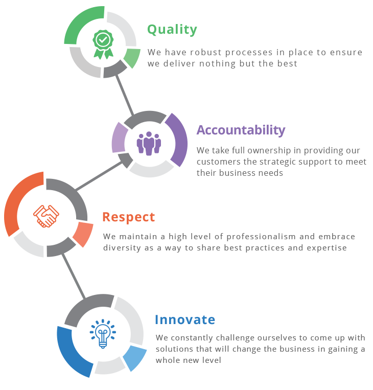 - Adopts the principle of providing increasing added value to its customers and partners by investing on advanced technologies, innovative products and services for the business solutions